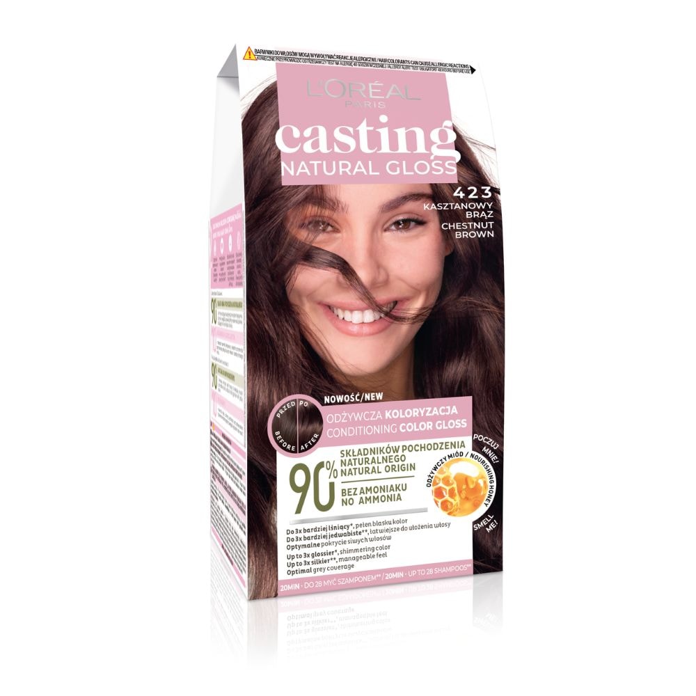 Casting Natural Gloss on juukseid toitev poolpüsivärv ilma ammoniaagita, mille koostis on 90% ulatuses looduslikku päritolu. Annab tulemuseks rikkaliku, loomuliku ja särava juuste tooni ning katab optimaalselt esimesed hallid juuksed. Lihtne ja kiire kasutamine on jõukohane ka algajatele!