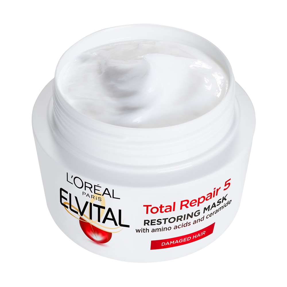 Juuste loomulik kaitsekiht nõrgeneb aja möödudes ja kahjulike välistegurite mõjul. Juuksed muutuvad õhemaks, nõrgemaks ja selle tagajärjel ka elutuks, karedaks ning tuhmiks. Sarja Total Repair 5 tooted taastavad juukseid tõhusalt. Juuksemask Elvital Total Repair 5 sisaldab 10% taastavat kompleksi KERATINXS*, taastab ja tugevdab juukseid tõhusalt, võideldes viie kahjustunud juuste tunnusega: 1) haprad ja katkevad juuksed 2) karedus 3) niiskuskadu 4) jäikus 5) lõhenenud juukseotsad. Pärast ühte kasutuskorda taastus 51% juuksekiust!** Pärast viit kasutuskorda taastus kuni 100% juuksekiust!**