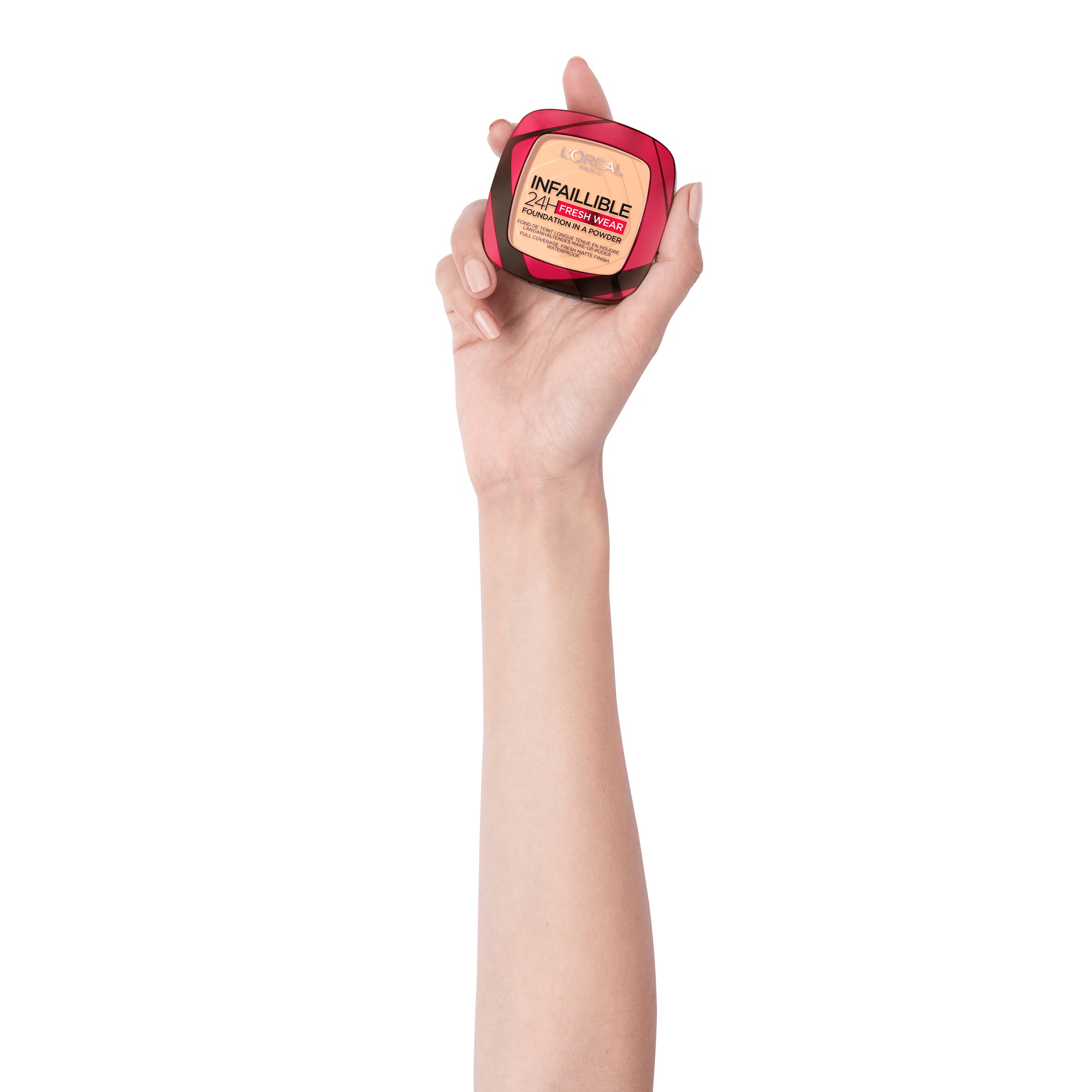 Avasta L’Oréal Paris’ Infaillible 24H Fresh Wear Foundation In A Powder matistav puuder, mis on saanud internetis sensatsiooniks. Katab nagu vedel jumestuskreem, andes laitmatu tulemuse juba ühe tõmbega. Kuni 24 tundi* püsiv tulemus. (* Tarbijatest, 101 naise hulgas.) See on rohkem kui tavaline puuder, see on jumestuskreem PUUDRI KUJUL. Toote koostis on rikastatud eriti kergete pigmentidega, mis kinnituvad nahale, tagades loomulikult mati viimistluse kogu päevaks. Kreemi on lihtne hajutada ja see annab nahale laitmatu välimuse. Saadaval neljas toonis. Kulumis- ja higikindel. Veekindel.
