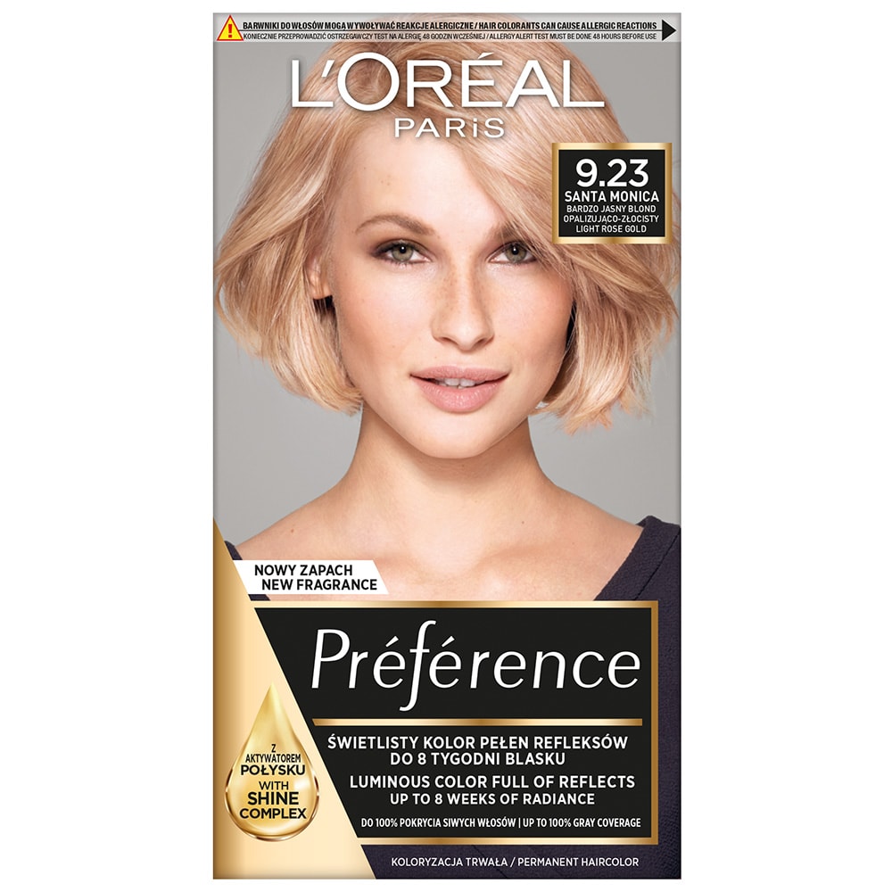 • Merevaigunootidega lillelõhn Préférence – see on premium kvaliteediga värvimine ja erksad toonid Pariisi moepoodiumitelt! Avastage Préférence’i ainulaadsed toonid valgust peegeldavate värvidega ja nautige tuhmumiskindlat ning säravat värvitooni. Ilusad siidsed juuksed sügava värvitooniga ja kuni 8 nädalat särava tulemusega* peale värvimist ning hallikatvus kuni 100%!