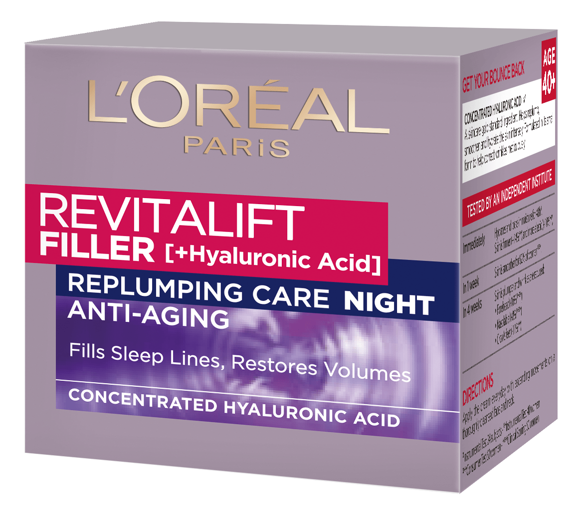 Naha vananemine on vältimatu protsess, mis ei piirdu üksnes nähtavate kortsudega. Nahk muutub kuivaks, tekivad naha „lõtvumise“ tundemärgid ning põsesarnade piirkond kaotab oma elastsuse. Esteetilisest dermatoloogiast inspireerituna on L’Oréal Paris laborid välja töötanud täiustatud öökreemi koostise, mis on rikastatud kahte tüüpi hüaluroonhappega, et toetada kortsude vähenemist ja naha prinkuse taastumist ööst öösse*. Mikrohüaluroonhape parandab naha elastsust ja taastab selle mahu ning uus mikrotäitev hüaluroonhape, 50x väiksem kui makrohüaluroonhape, toetab kortsude tõhusat vähendamist. Tulemused? Kohene naha niisutamine, mis kestab 48h**. Peale ühte ööd tundub nahk pehmem ja pringim. 4 nädala pärast muutub see elastsemaks***, nähtavalt vähenenud kortsudega* kolmes näo võtmepiirkonnas: otsmik -16%, kanavarbad -11% ja suu-ninaümbruse vagu -8%.